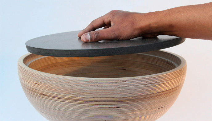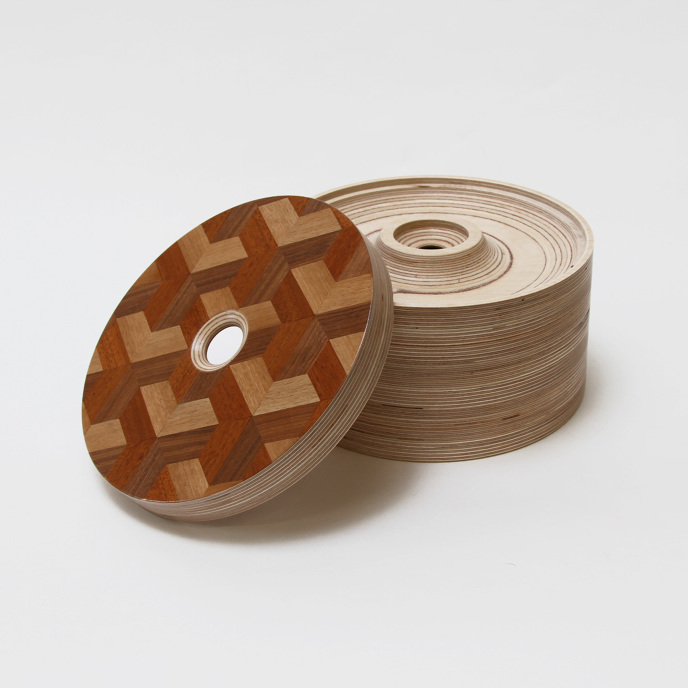 MATÉRIAUX: Multiplex bouleau et cerclage de bois tenté.